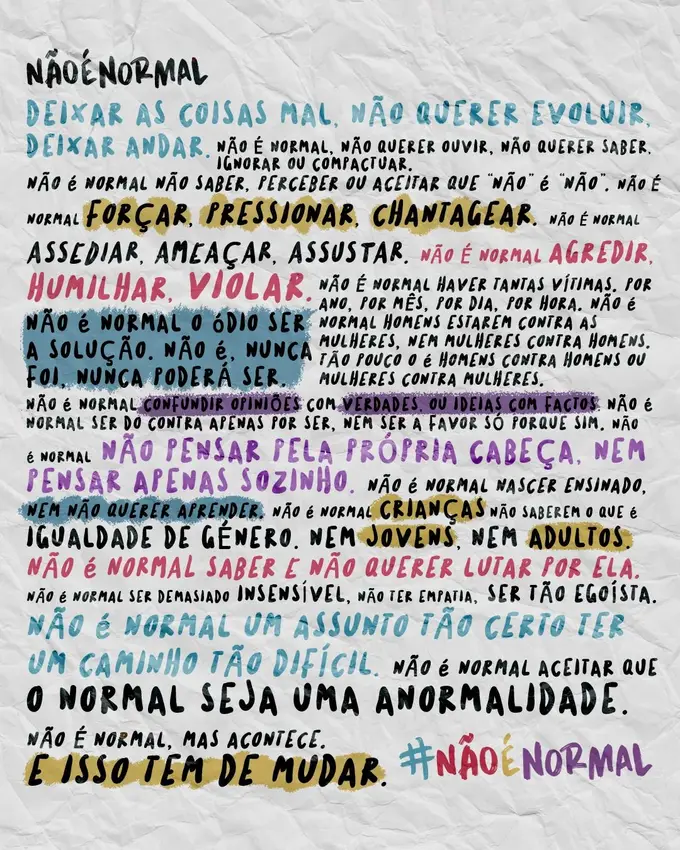 Vamos a conversa importante. Não estou aqui a dizer que os homens também não sofrem, porque sofrem. Apenas as mulheres são mais bombardeadas todos os dias e calam-se! Se nos calarmos a sociedade não avança, ninguém irá perceber o quão urgente é preciso tomar medidas para prevenir e mudar comportamentos machistas.